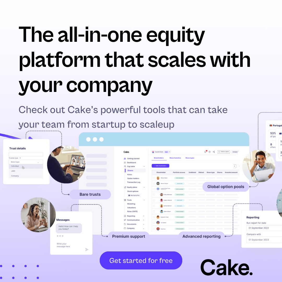 All-in-one system that lets you offer equity, simulate raises, and manage shareholders anywhere in the world. Fast-track your growth with Cake's cap table, equity templates, 409A, and scalable equity solutions.